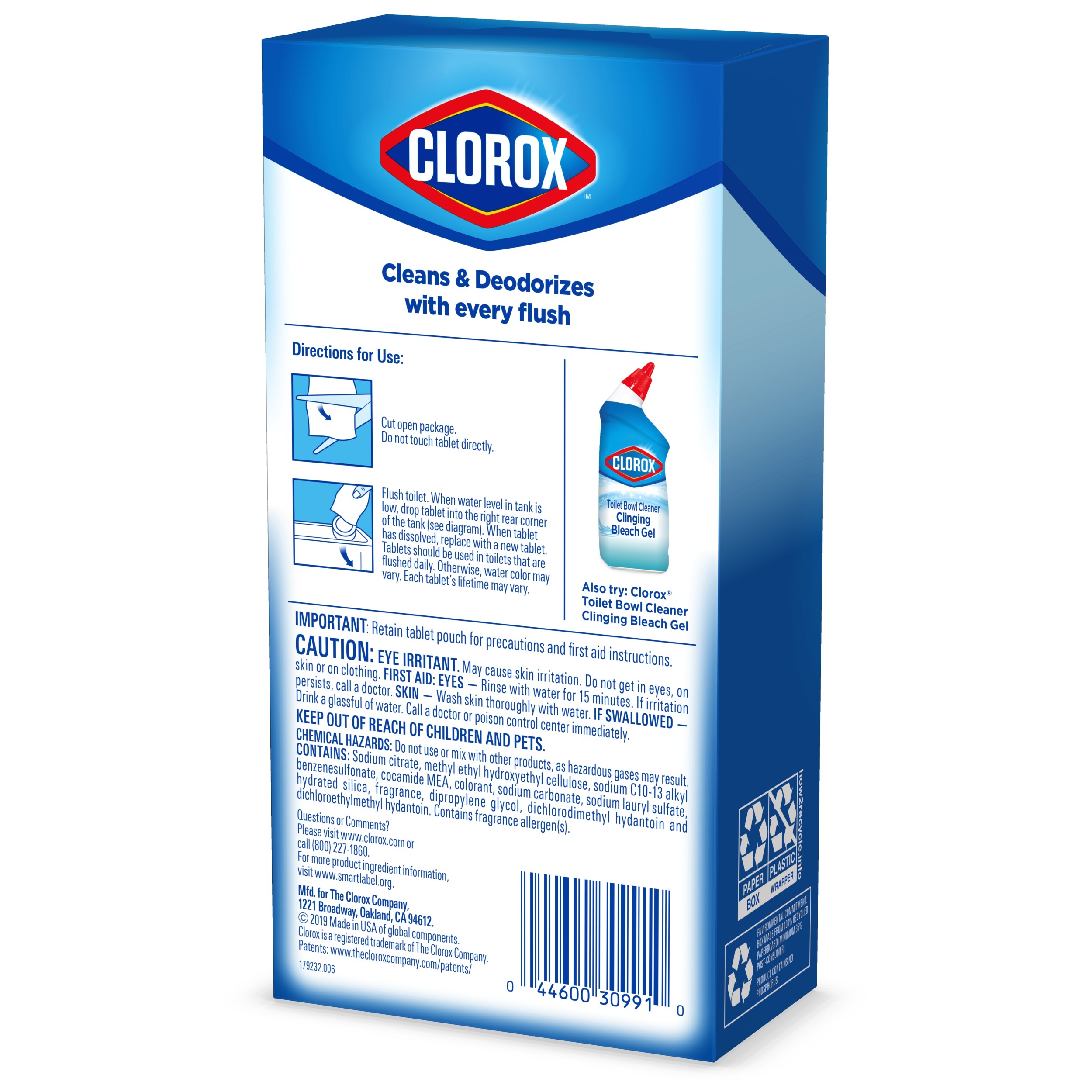 View Clorox Bleach & Blue Automatic Toilet Bowl Cleaner Rain Clean - 4 Pack Images. Clorox ultra clean toilet tablets bleach & blue cleans and deodorizes your toilet bowl with every flush and leaves a fresh rain clean scent. This toilet bowl drop in continuously cleans the bowl with every flush while helping to prevent tough stains.