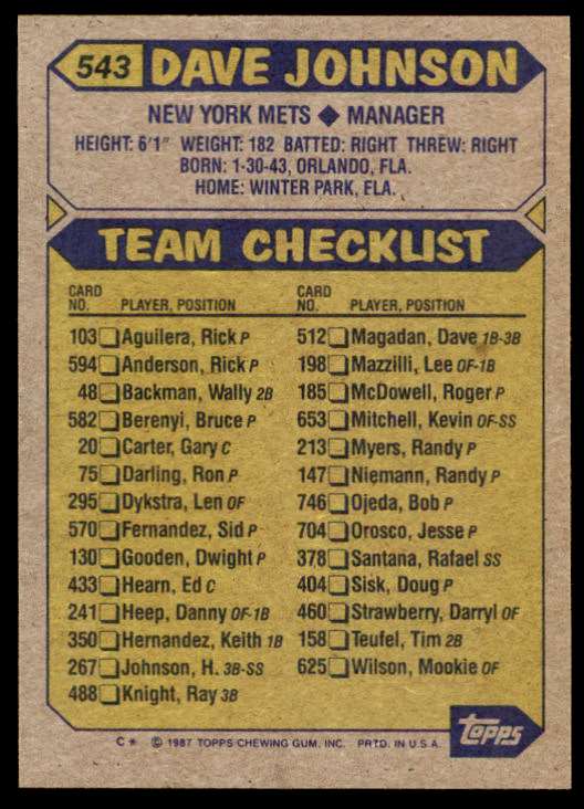 Get 1987 Topps Dave Johnson Baseball Card UK. 1987 topps #5 dave righetti rb. Add selected cards to my favorites.